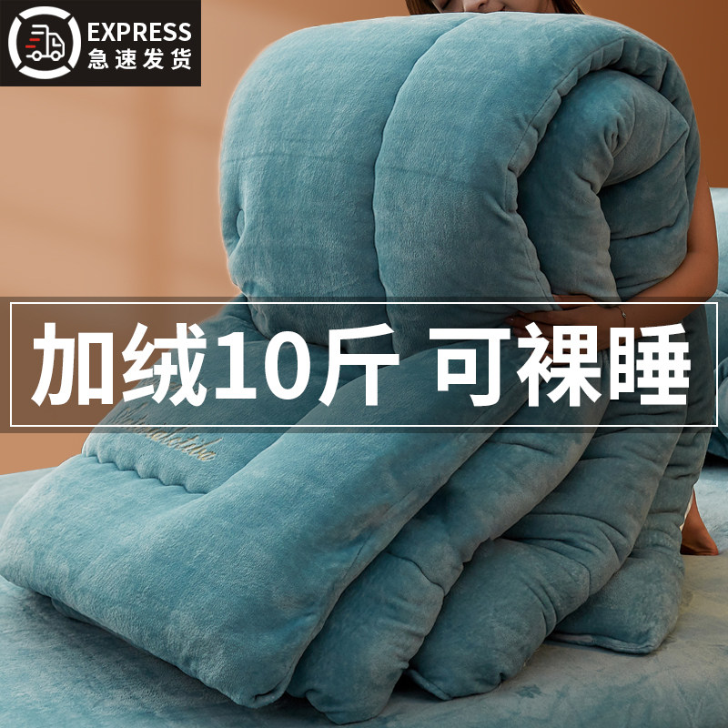 被子牛奶绒冬季棉被双面10斤冬被法兰绒加厚保暖冬天大豆纤维被芯