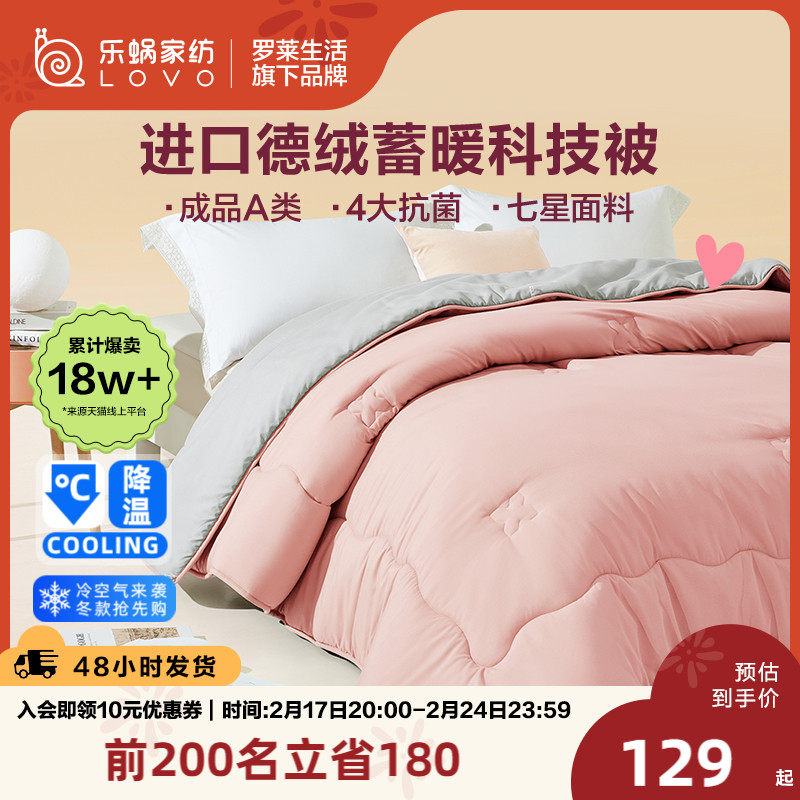 罗莱生活LOVO乐蜗春秋被四季被冬被德绒抗菌棉被加厚被芯被子保暖
