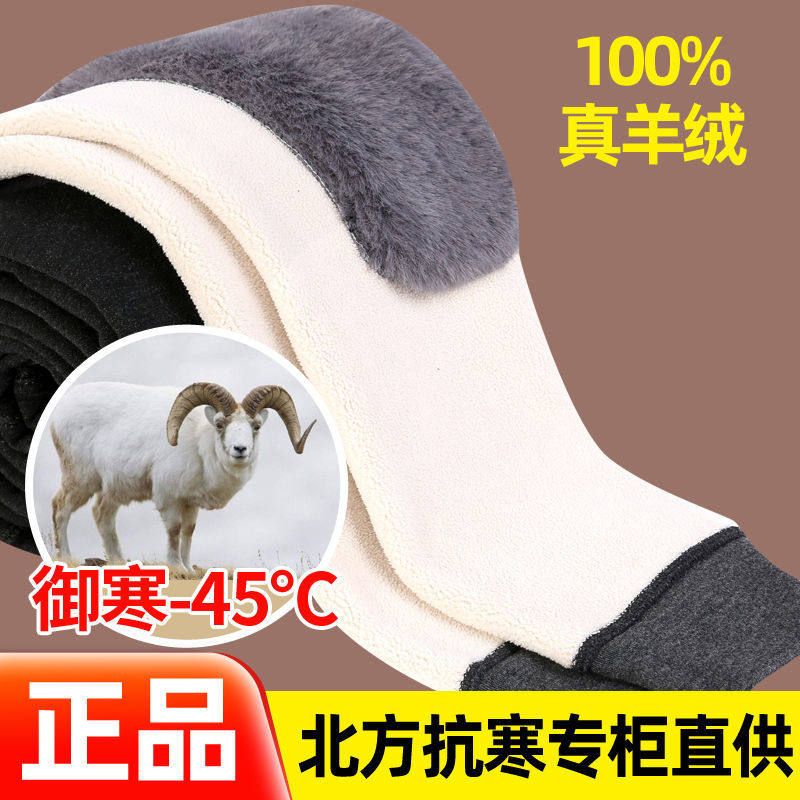 100%纯羊毛裤男士加厚气凝胶保暖裤女薄款打底高腰棉毛线裤秋裤冬