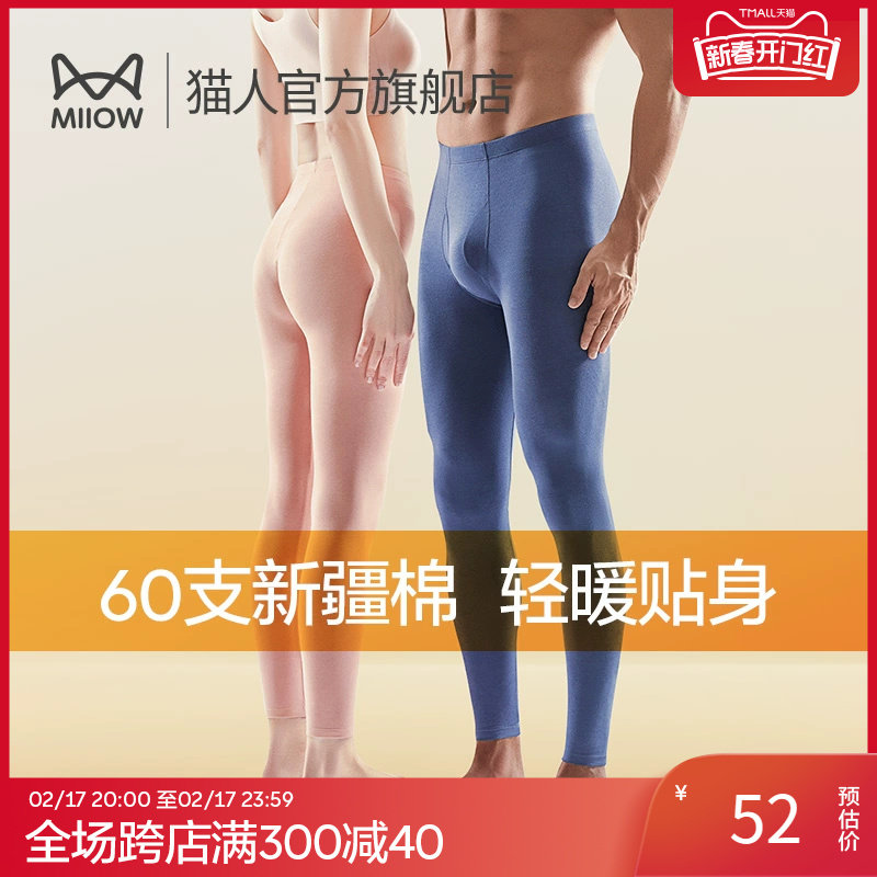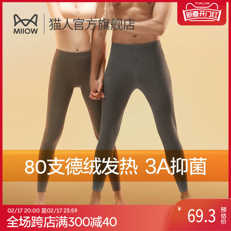 猫人80支德绒发热加厚加薄绒保暖裤男女情侣打底裤无痕恒温棉秋裤