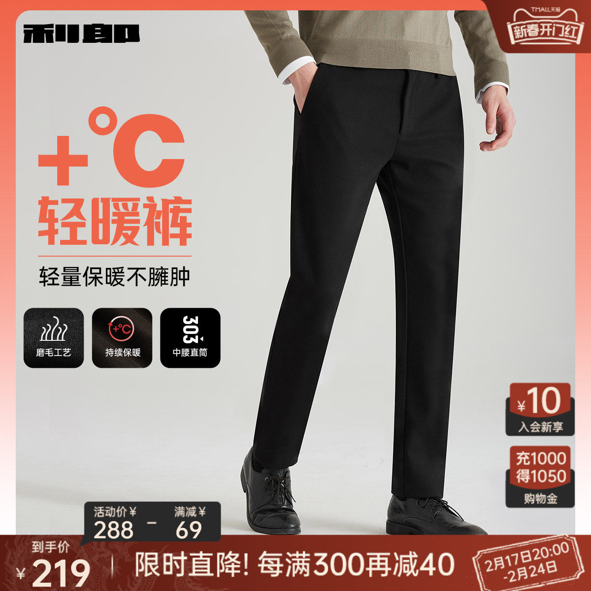HLA/海澜之家轻商务加绒加厚休闲裤秋冬季新款保暖通勤直筒裤男士
