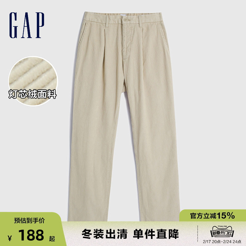 【断码优惠】Gap男装秋冬季灯芯绒保暖直筒休闲裤复古长裤745026