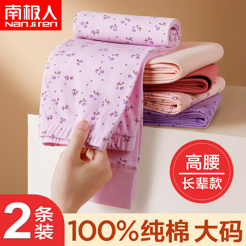 南极人妈妈纯棉秋裤女高腰薄款保暖衬裤大码宽松中老年人全棉毛裤