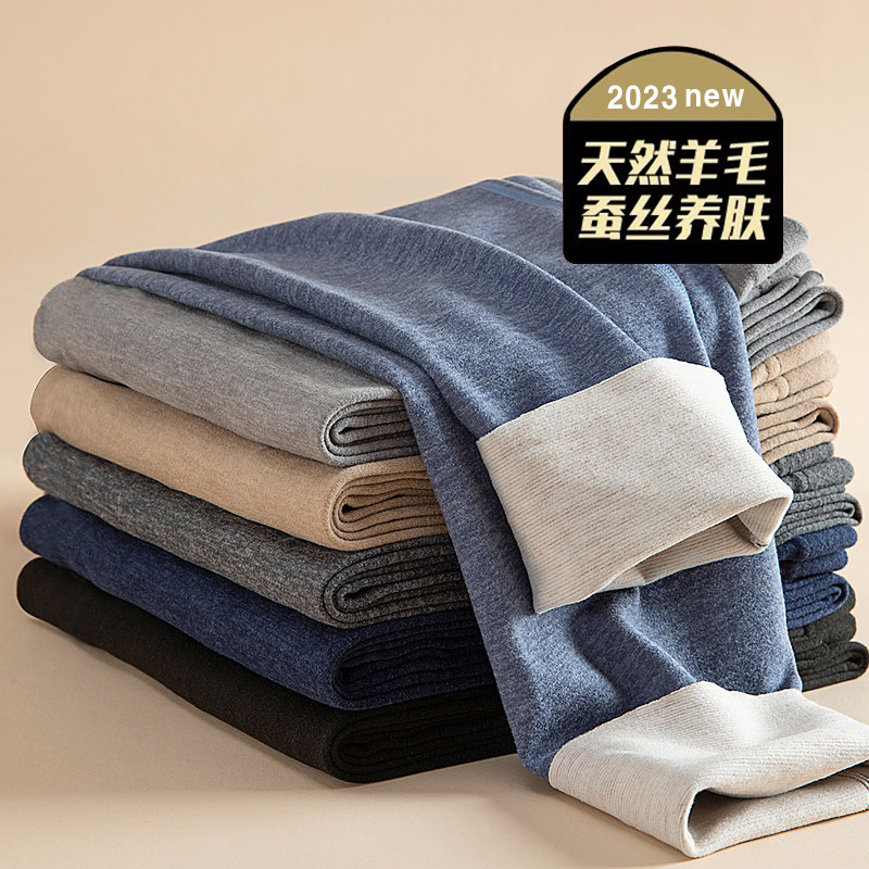 秋冬季棉裤男女士100%桑蚕丝羊毛保暖裤羊绒加厚高腰修身打底裤薄