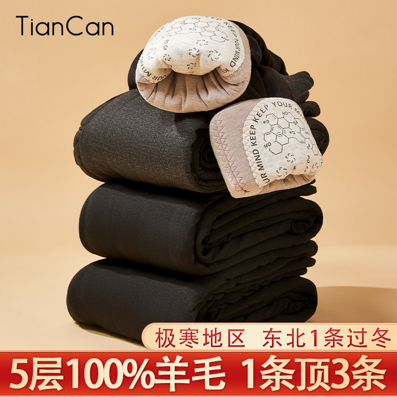 德绒蚕丝羊毛秋裤女内穿秋冬季新款加绒发热高腰棉毛保暖打底线裤