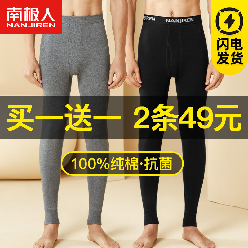 南极人纯棉抗菌保暖秋裤男款薄款全棉毛衬裤内穿打底大码棉裤冬季
