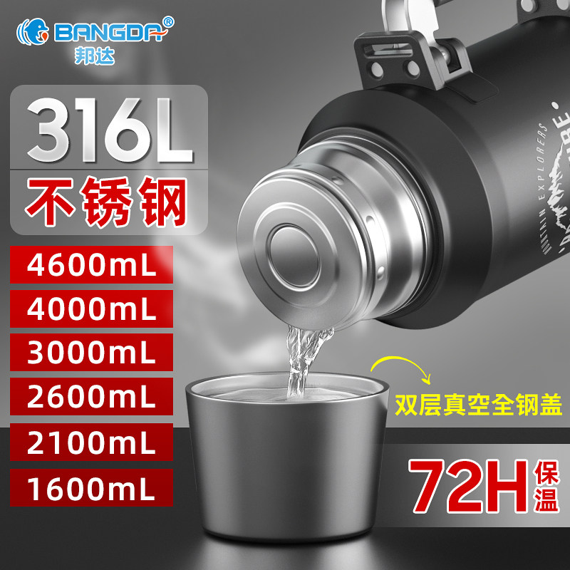 保温杯大容量316不锈钢保温壶男女户外便携车载水壶旅行壶水杯5升