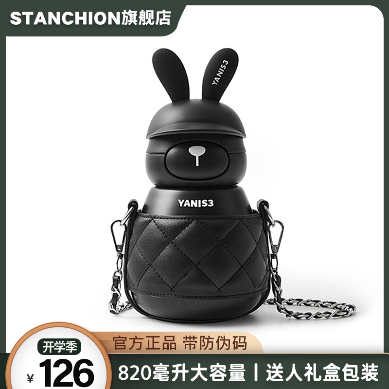 兔子吸管保温杯女生高颜值大肚杯子学生可爱带子斜挎可背儿童水杯