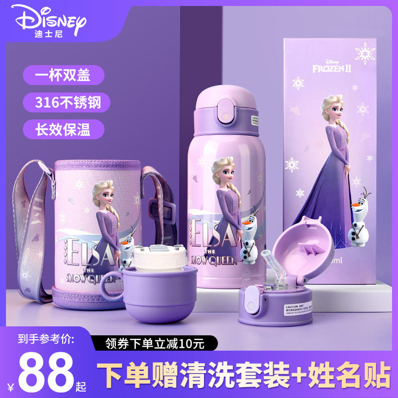 迪士尼儿童保温杯男孩食品级316不锈钢小学生上学专用带吸管水杯