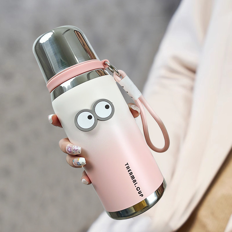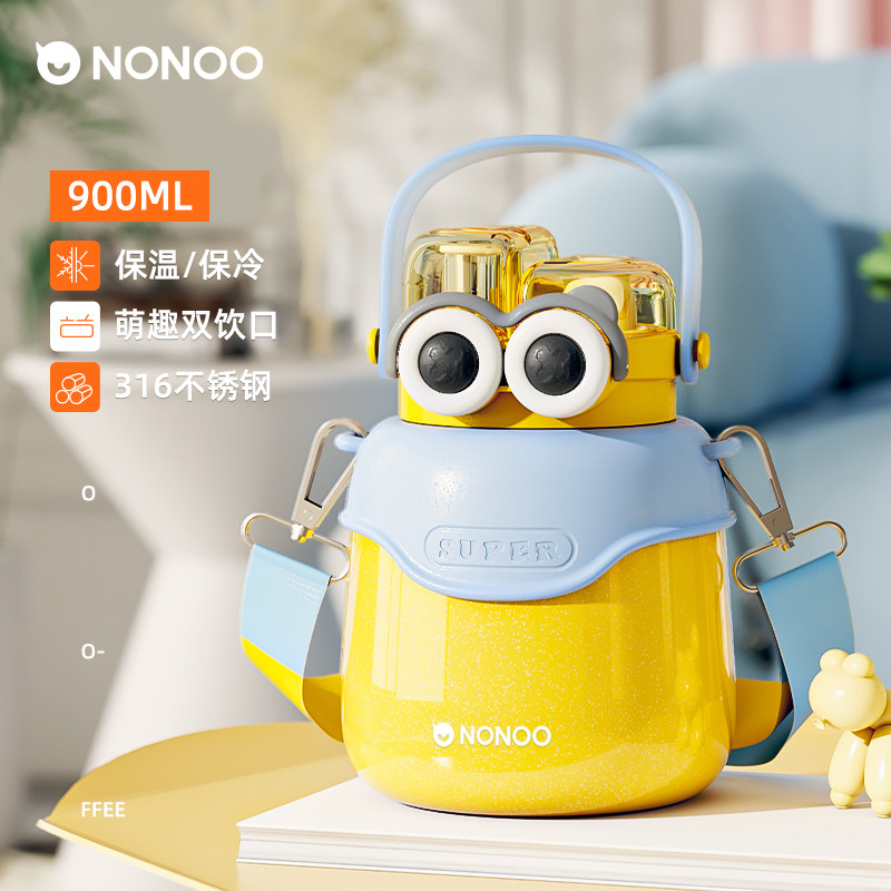 NONOO大萌眼大肚保温杯女学生高颜值316不锈钢大容量儿童吸管水杯
