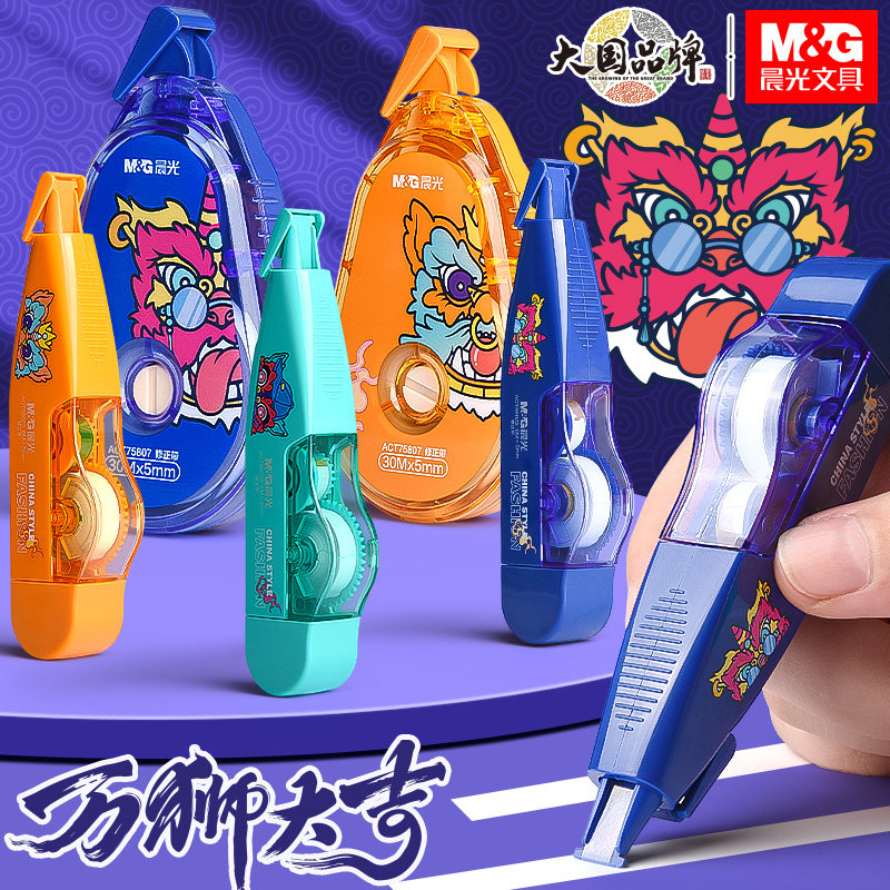 晨光万狮大吉联名限定修正带学生用可换替芯涂改带高颜值ins日系女生改正带按动式大容量网红涂改液便携初中