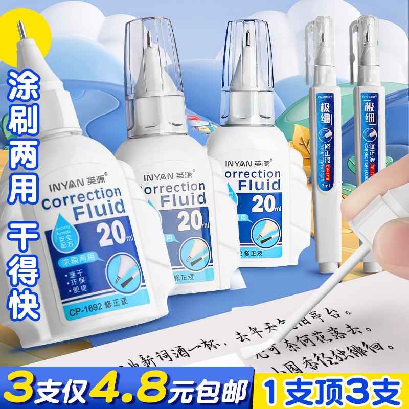 英源涂改液修正液学生用无毒快速干大容量改正液办公文具白色消字灵水修正笔带退去错字神器万能消除字迹
