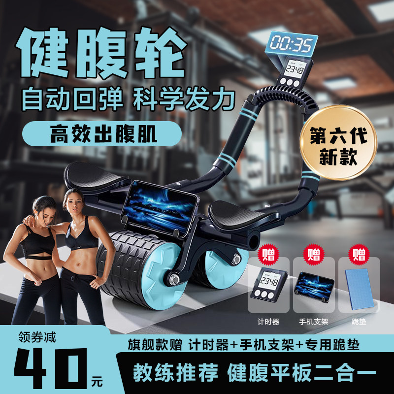 佑美自动回弹健腹轮卷腹轮腹肌神器滚轮机健身运动器材女男士家用