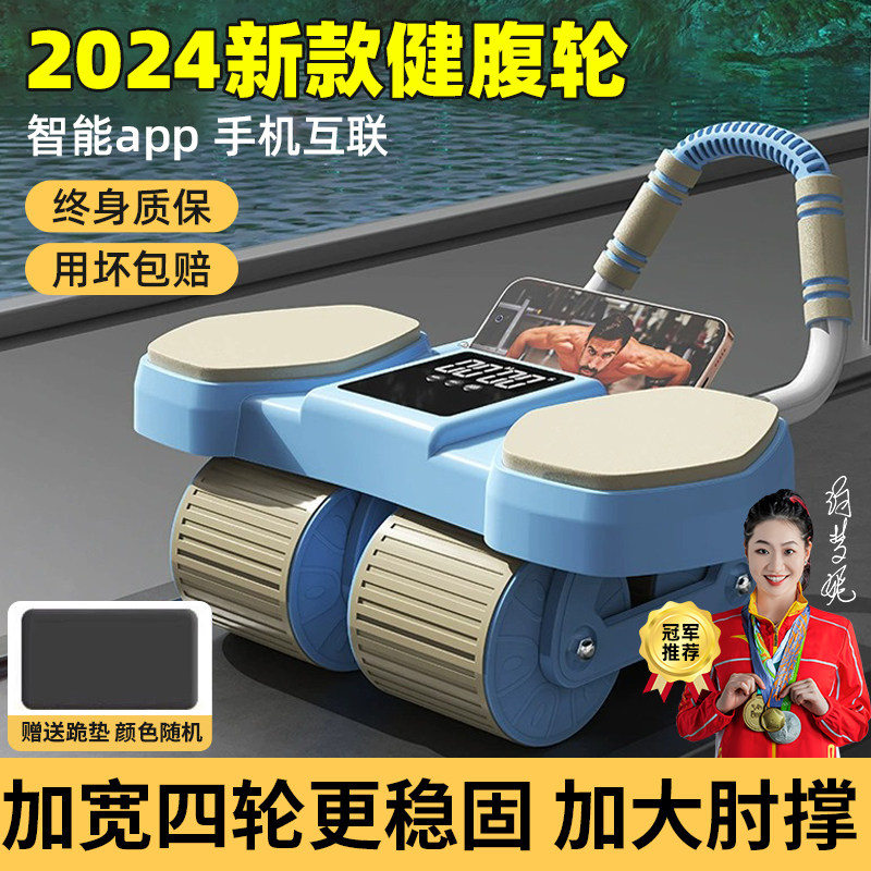 2023新款健腹轮自动回弹四轮腹肌轮男士专业肘撑式健身滚轮卷腹ai