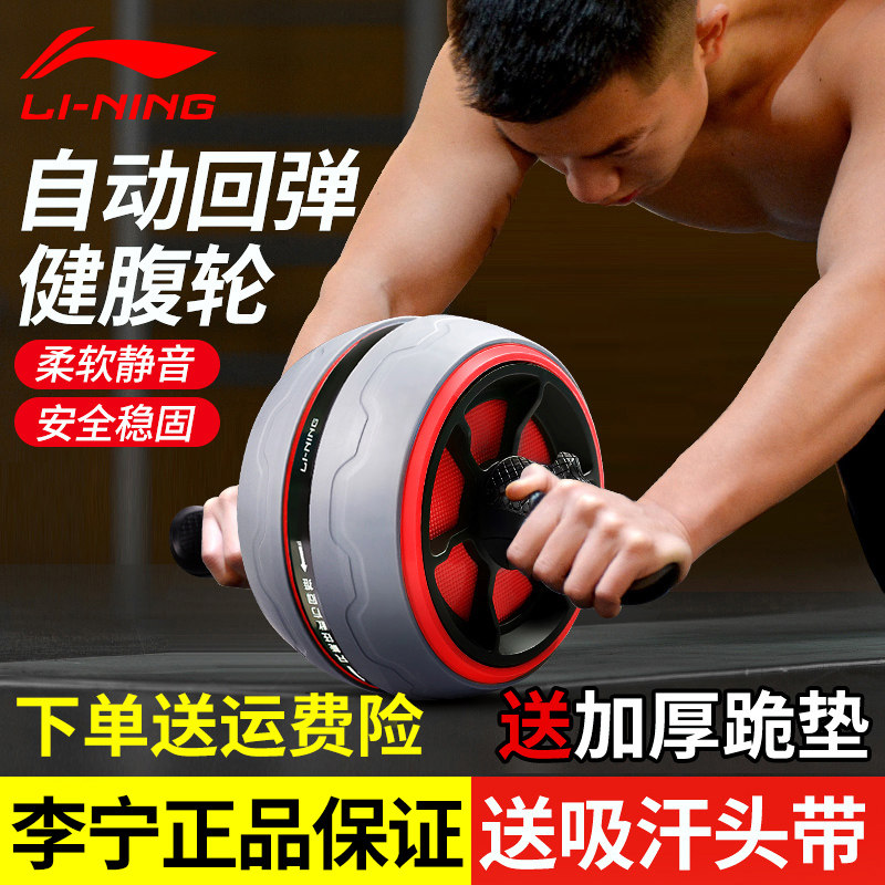李宁健腹轮男士家用收腹卷腹滑轮自动回弹腹肌滚轮女运动健身器材