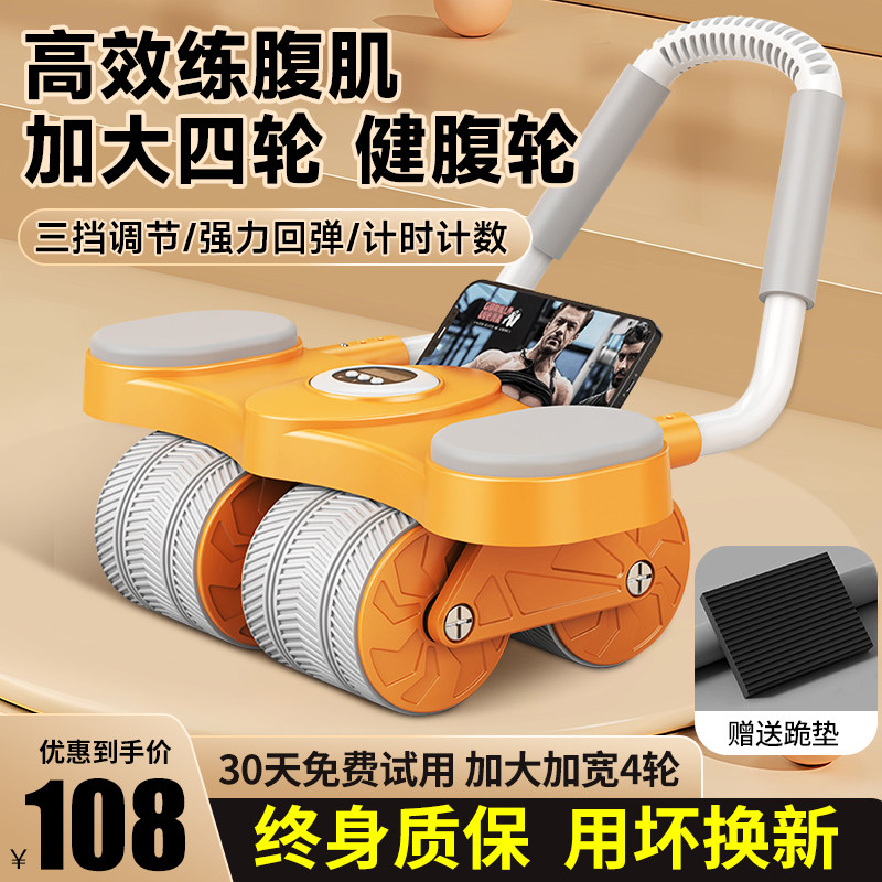 四轮健腹轮初学者自动回弹腹肌轮滚轮推轮家用健身器材锻炼马甲线