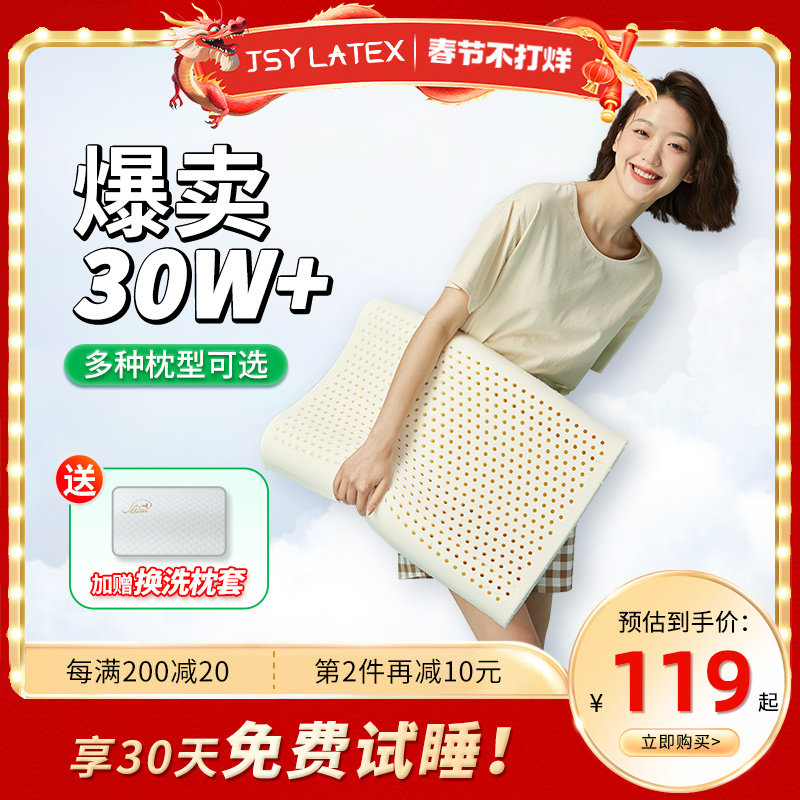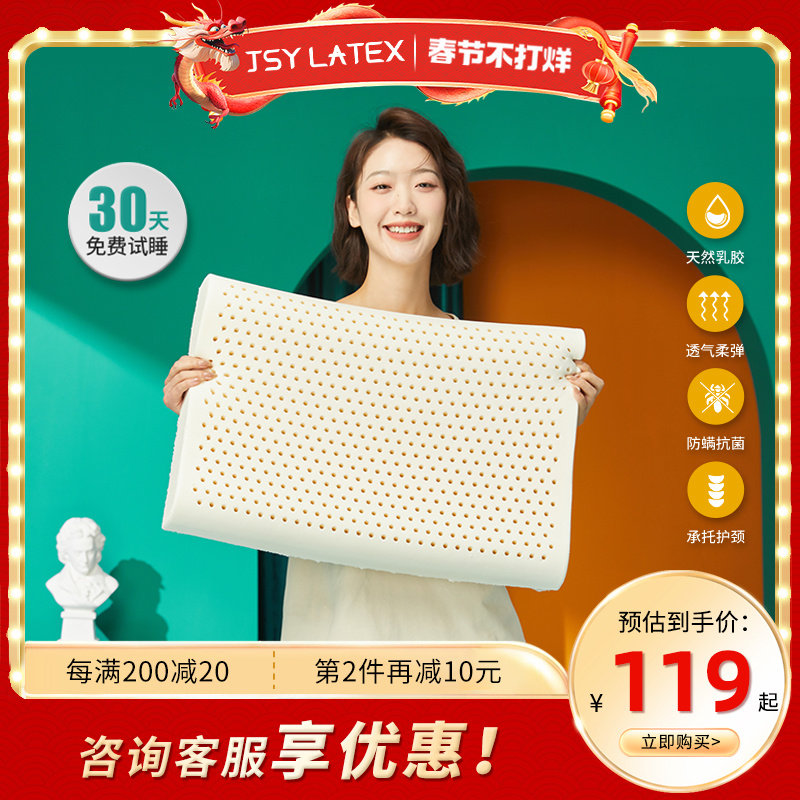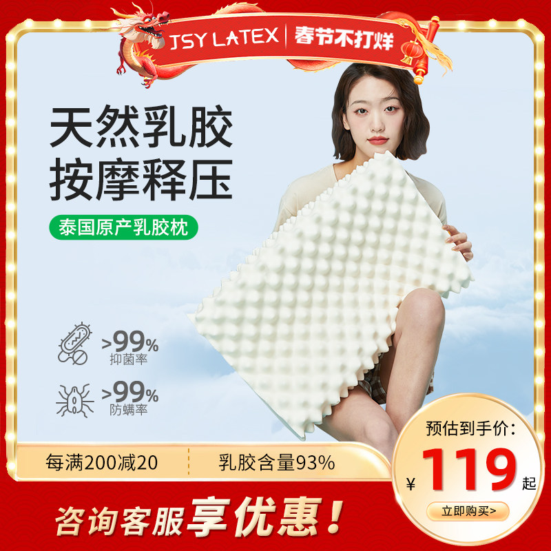 jsy泰国进口天然乳胶枕头儿童成人护颈椎枕按摩助睡眠枕橡胶枕芯