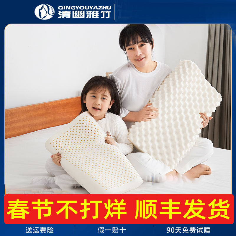 清幽雅竹乳胶枕头天然儿童6岁以上邓禄普硅胶泰国橡胶护颈枕成人