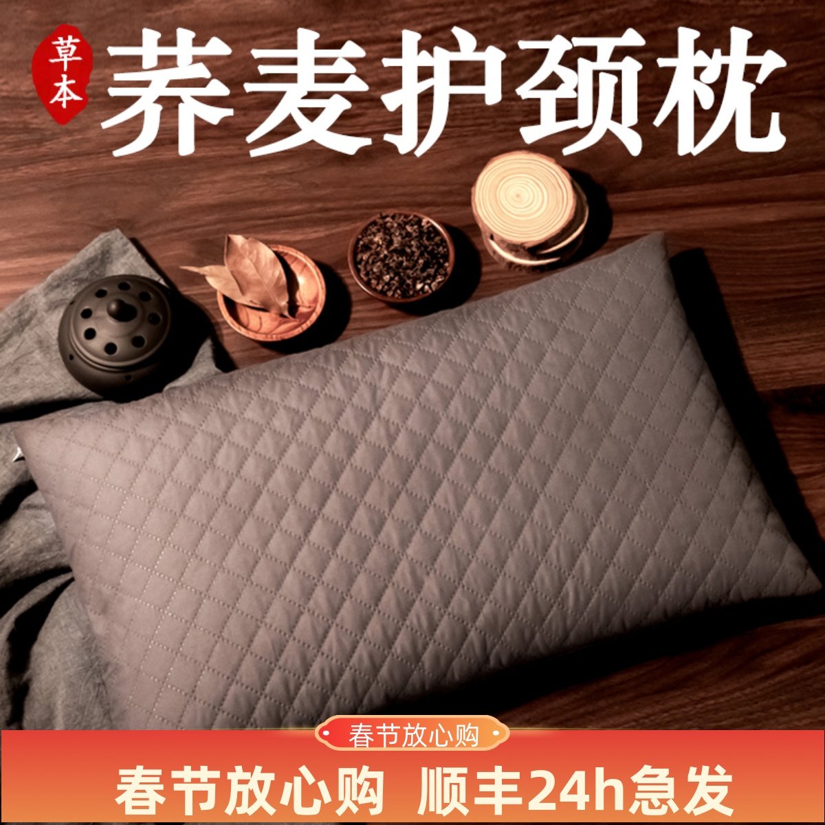 全苦荞麦壳枕头芯纯乔皮护颈椎单人青少年婴幼儿童定型硬保健送套