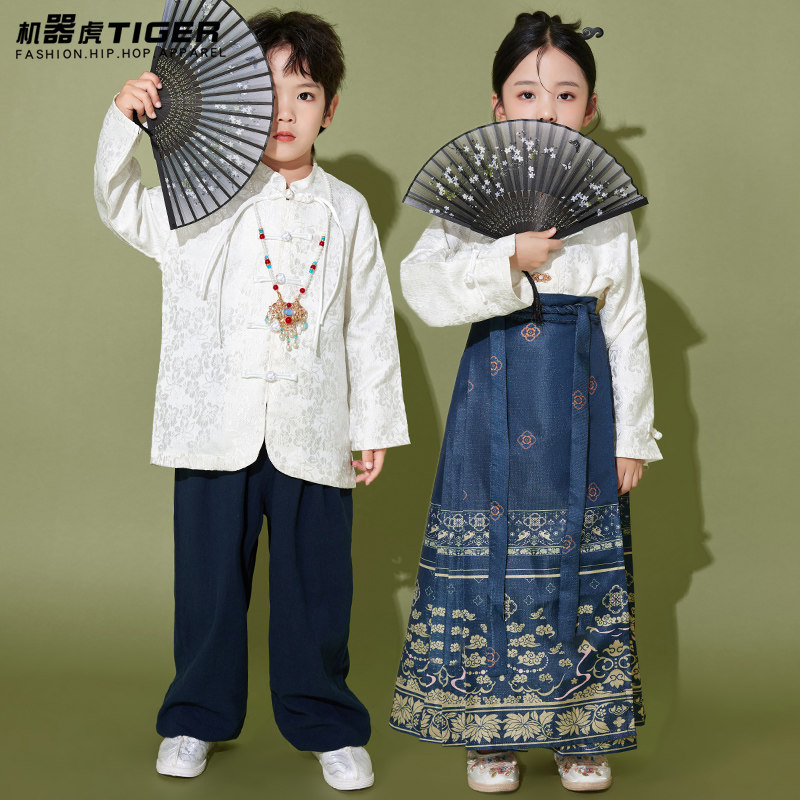 儿童新年拜年汉服马面裙小学生朗诵合唱服幼儿园喜庆舞蹈演出服装