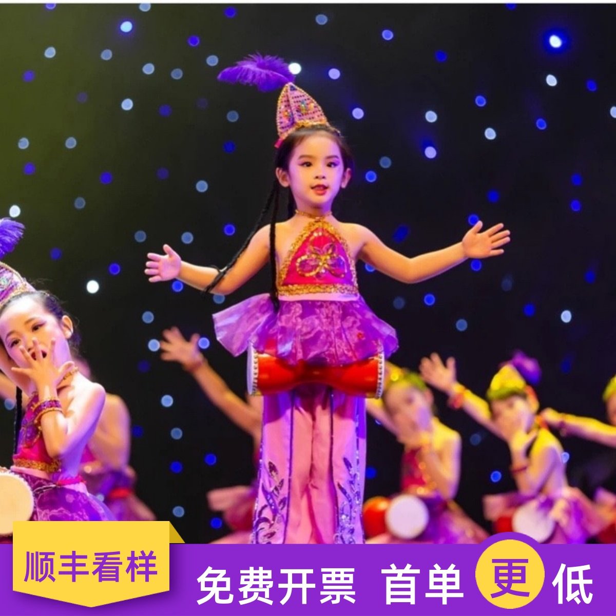 抖音紫金舞蹈西夏鼓娃女童同款演出服装原版伴奏紫色儿童表演服