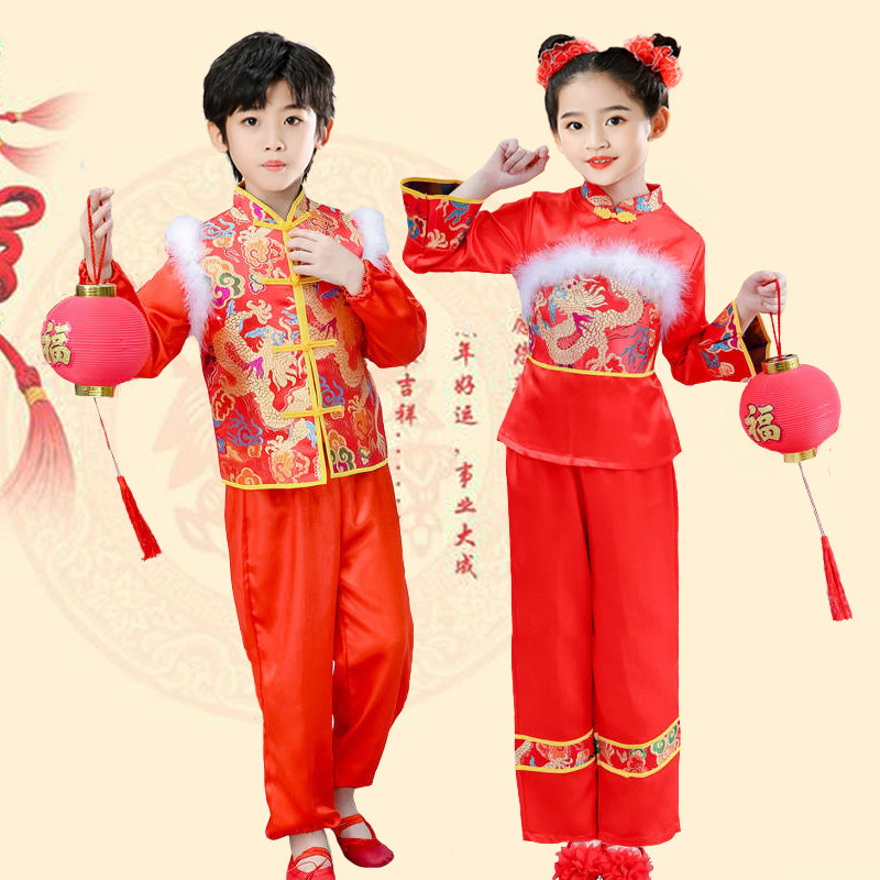 元旦儿童喜庆演出服男女童中国风拜年服幼儿开门红秧歌民族舞蹈服