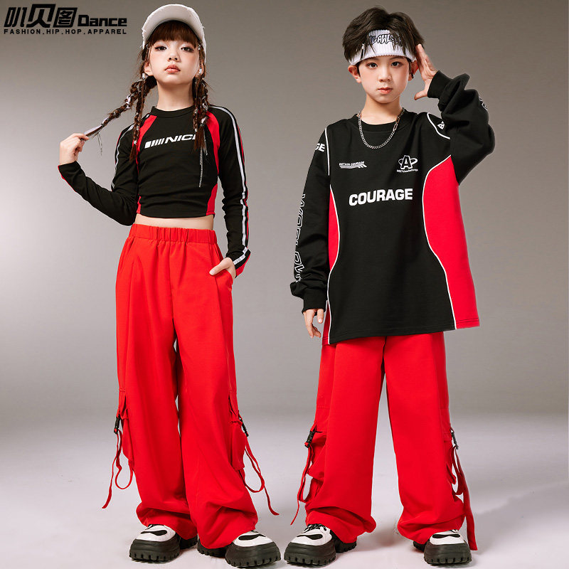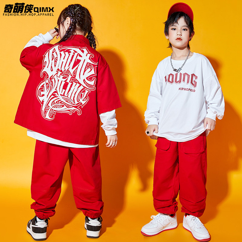 元旦儿童街舞套装hiphop男童嘻哈潮服外套女童舞蹈表演服装炸街