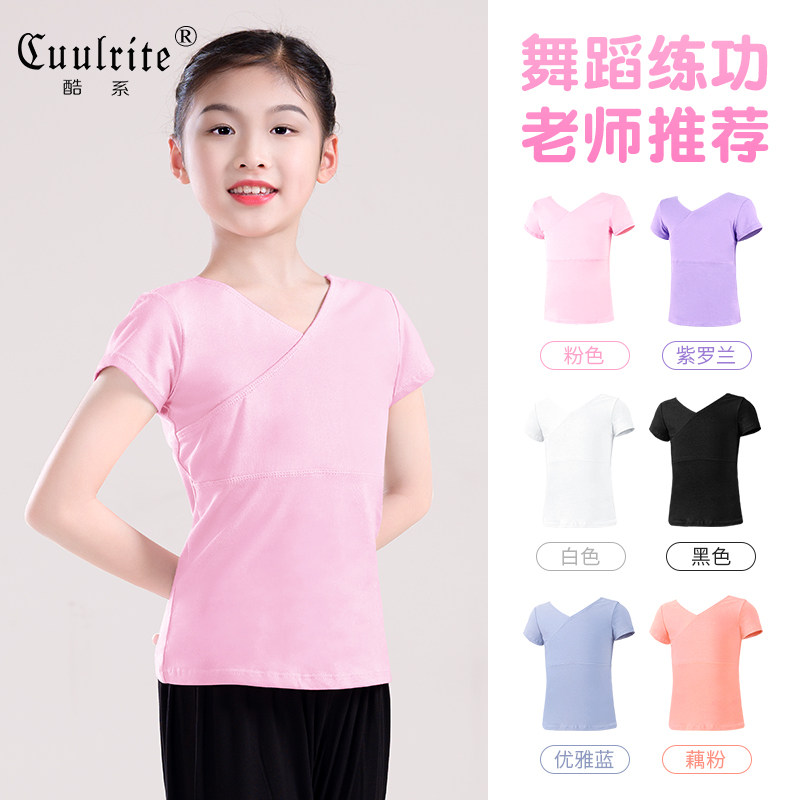 儿童舞蹈服短袖上衣夏季形体服女童拉丁舞练功服套装芭蕾舞体操服