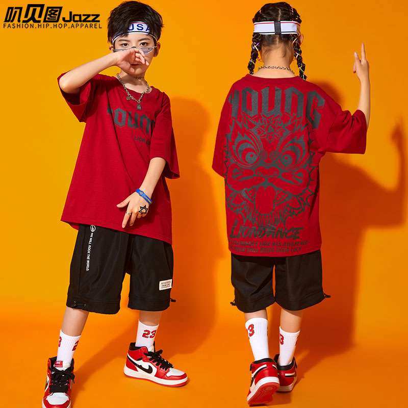 儿童街舞套装男童中国风少儿嘻哈国潮帅气舞蹈服装女童团体表演服