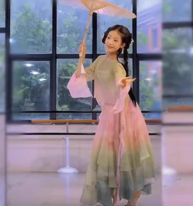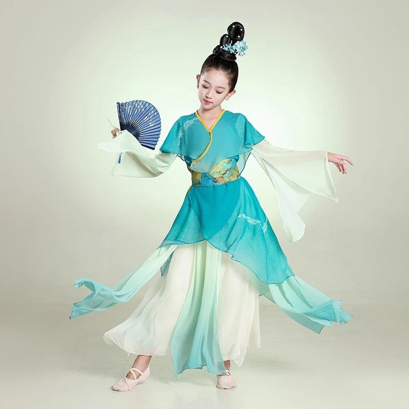 古典舞蹈服女飘逸儿童演出服群舞扇子舞伞舞中国舞仙气古风表演服