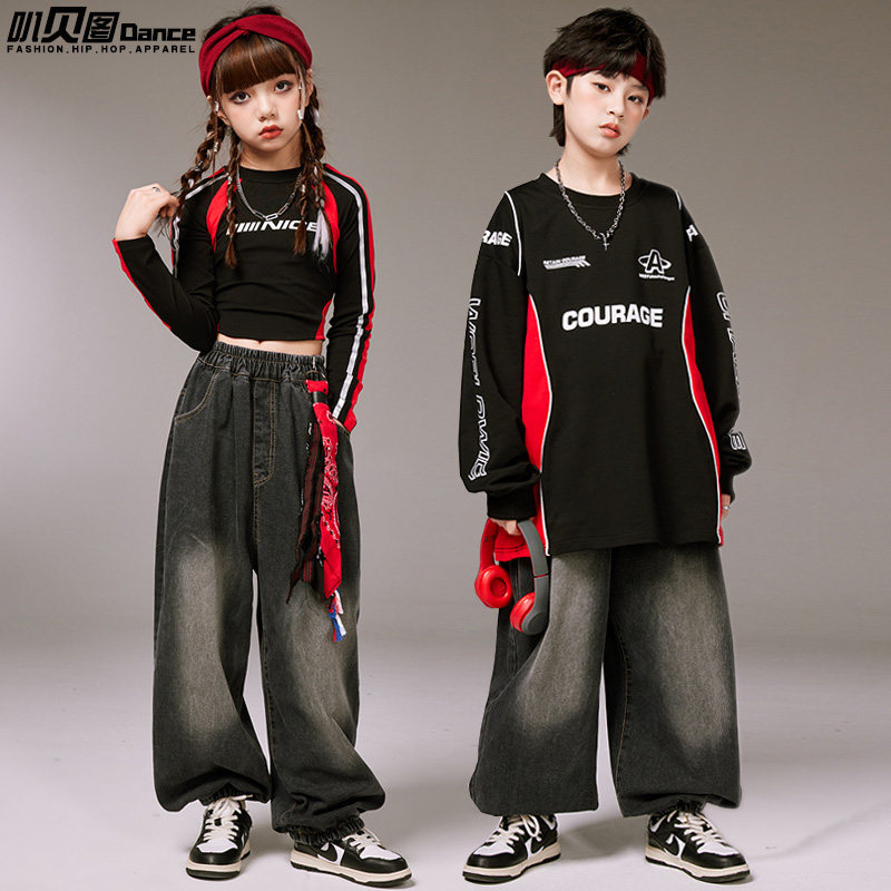 女童爵士舞服装儿童街舞套装腰封嘻哈舞蹈童装女孩炸街秋冬演出服