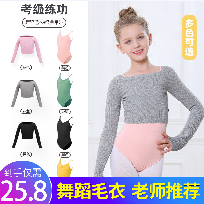 儿童舞蹈服吊带中国舞练功服芭蕾舞毛衣小外套体操服女童跳舞衣服