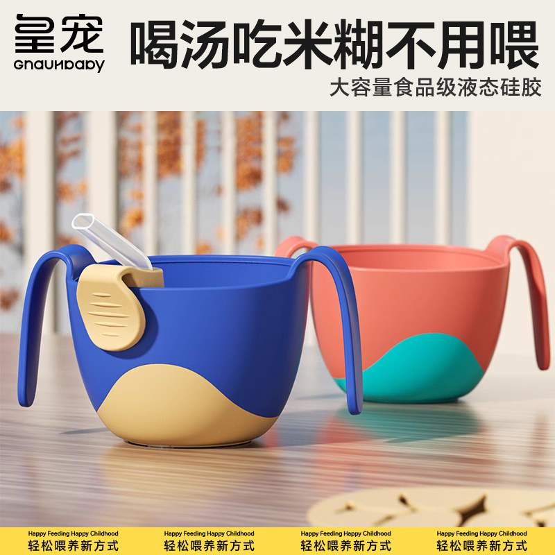 皇宠宝宝喝汤吸管碗三合一婴儿辅食碗儿童餐盘餐具套装吃饭碗神器