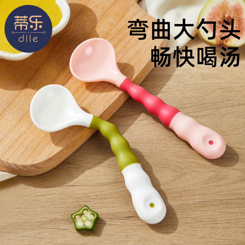 蒂乐宝宝学吃饭训练自主进食勺子婴儿辅食勺可弯曲大汤勺儿童餐具