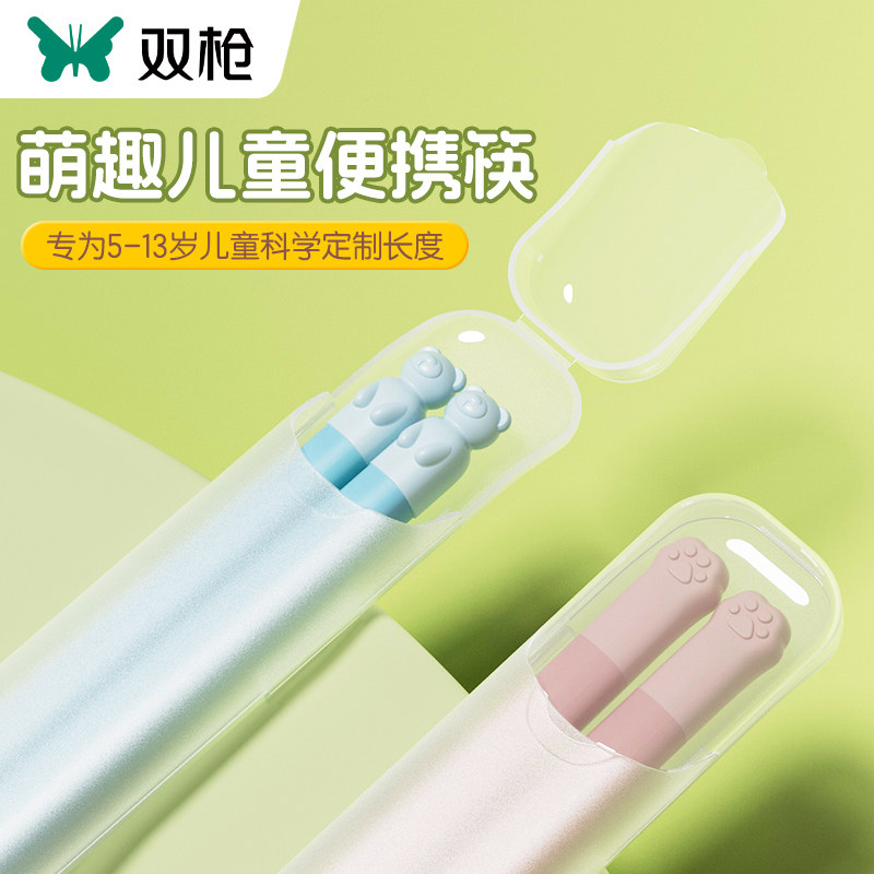 双枪便携餐具套装一人用儿童个人上学专用盒外带小学生筷子收纳盒