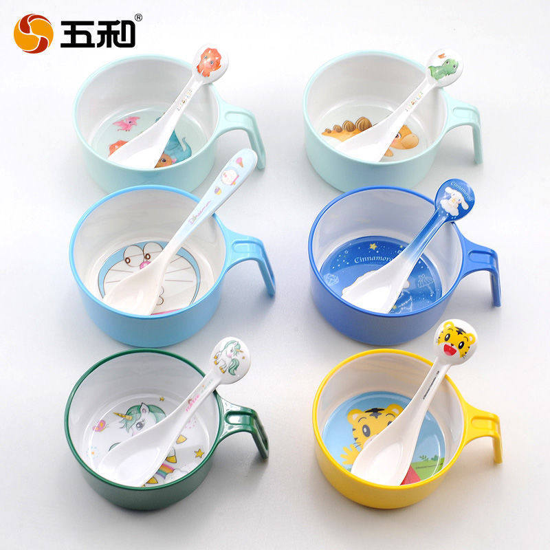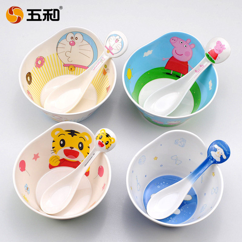 五和儿童碗宝宝餐具吃饭碗勺汤碗防摔防烫碗幼儿园可爱卡通辅食碗