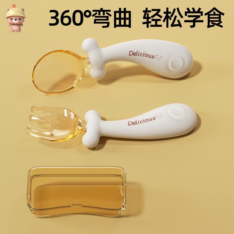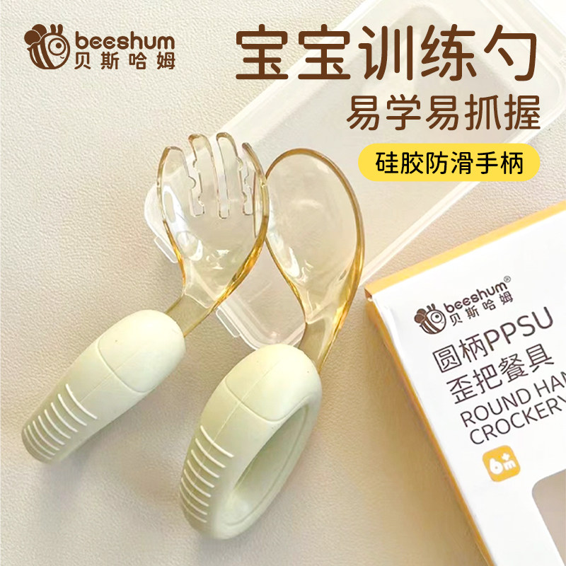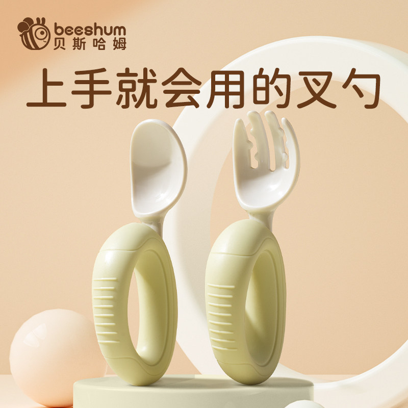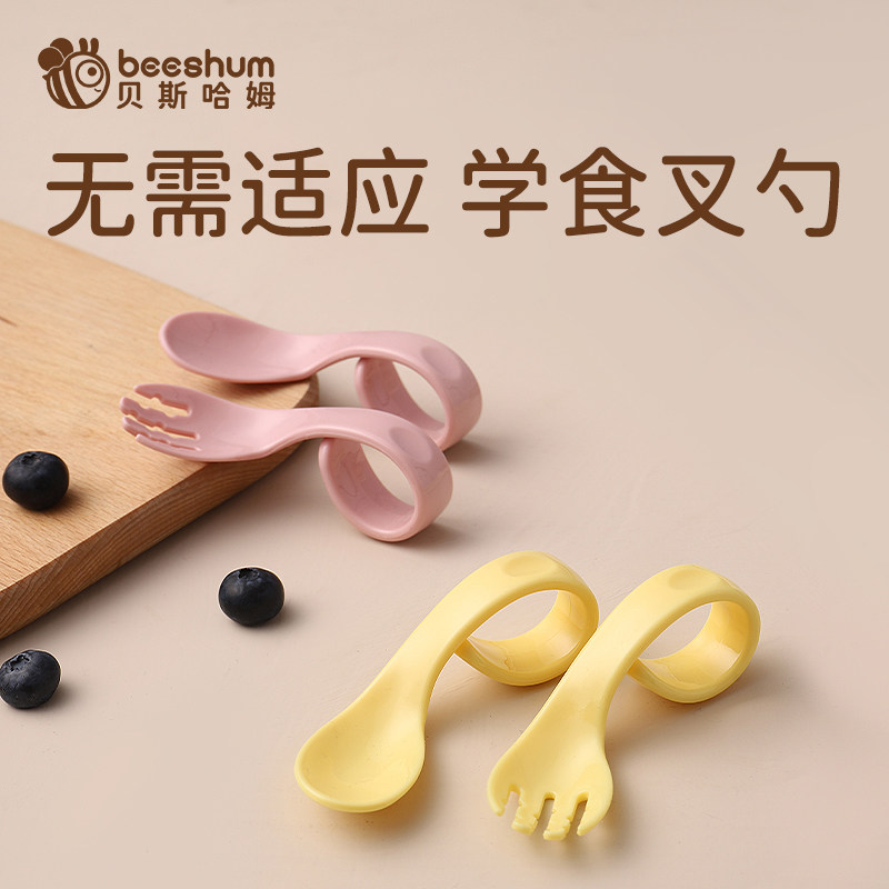 beeshum贝斯哈姆宝宝学吃饭婴儿辅食勺弯曲自主进食叉勺儿童餐具