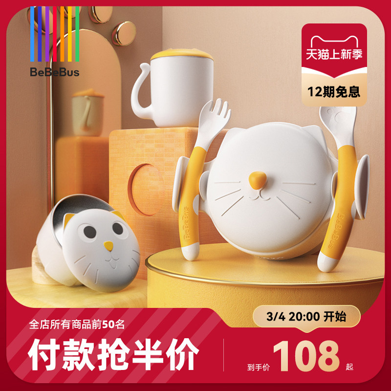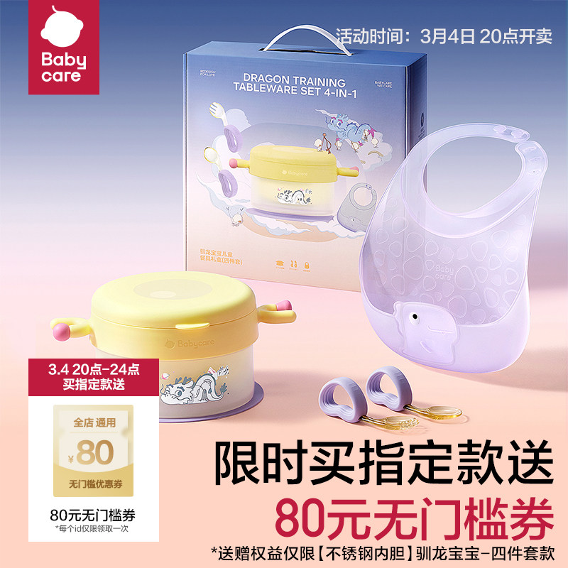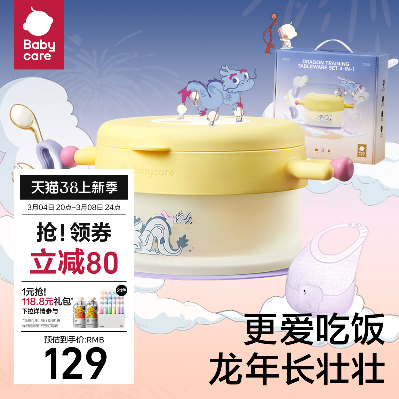 babycare龙年餐具礼盒宝宝辅食碗硅胶围兜叉勺儿童餐具