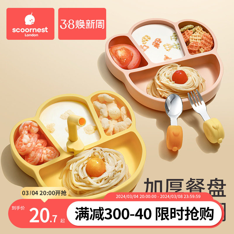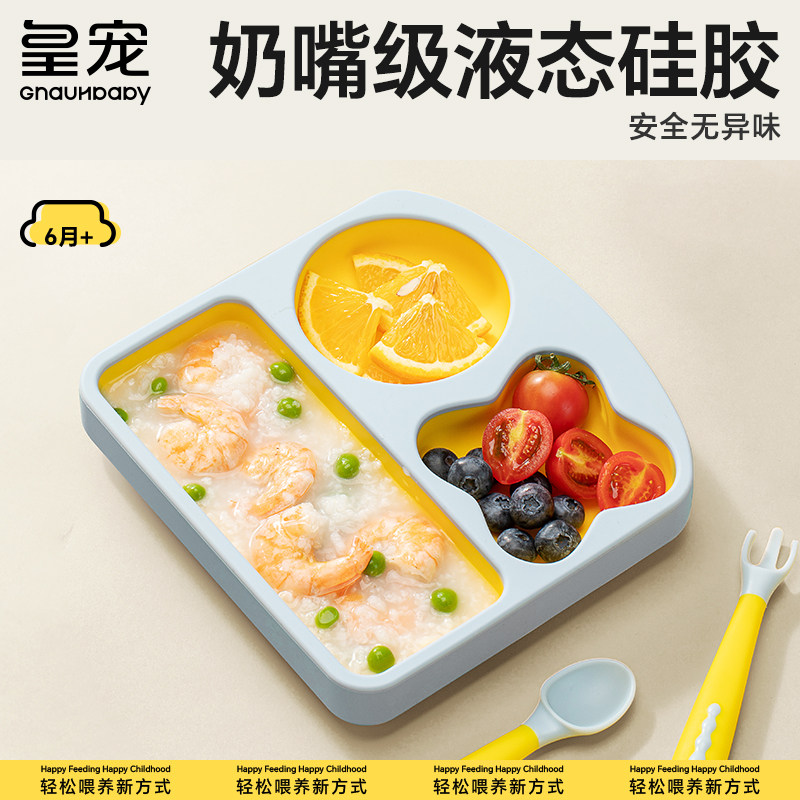 宝宝餐盘吸盘式婴儿儿童硅胶分格辅食盘学吃饭训练勺子餐具套装附