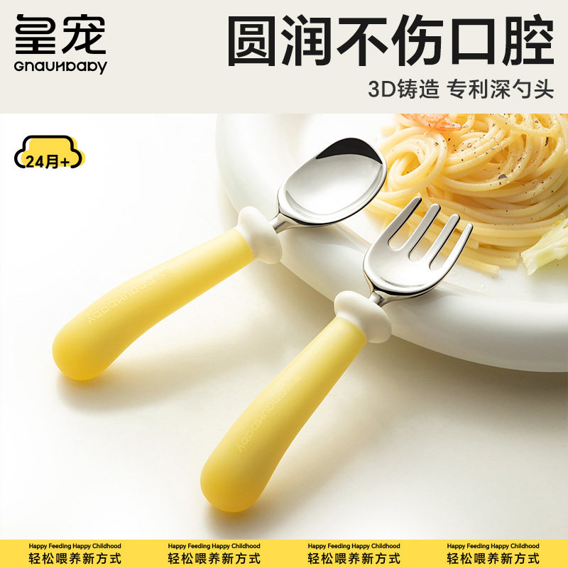 皇宠儿童勺子自主进食宝宝学吃饭训练2岁3不锈钢叉勺套装儿童餐具