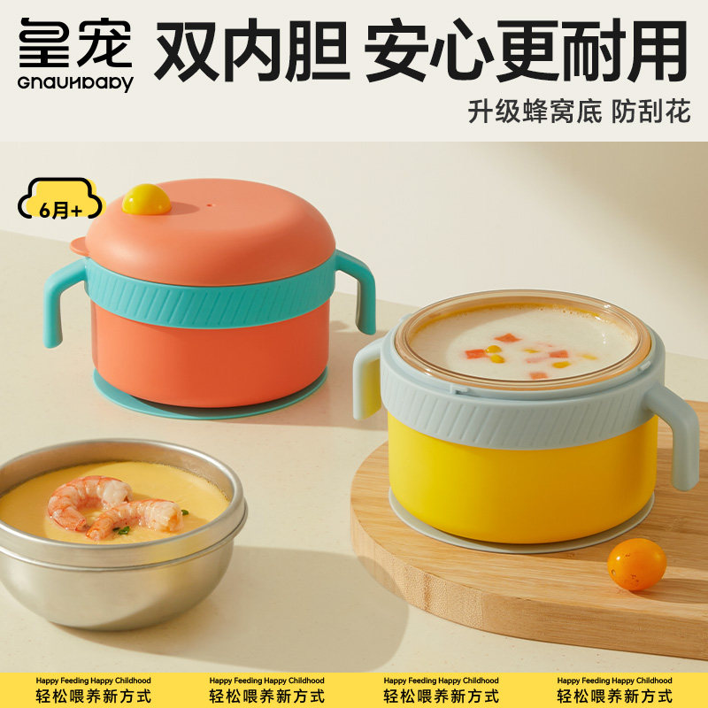 皇宠宝宝辅食碗婴儿专用注水保温碗恒温不锈钢吸盘幼儿童吃饭餐具