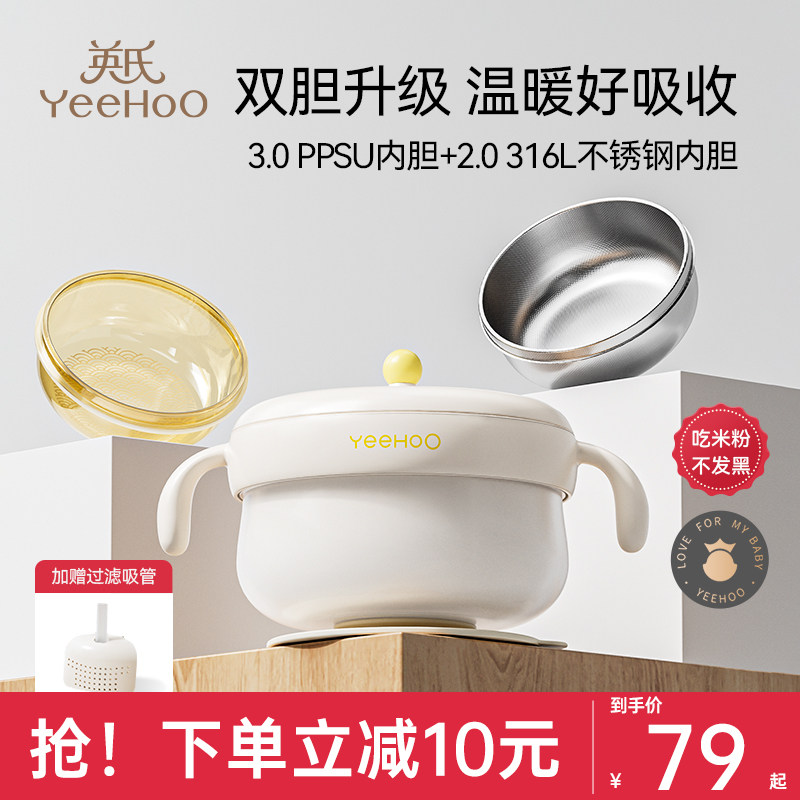 科巢PPSU宝宝注水保温碗辅食婴幼儿专用米粉吃饭恒温吸盘儿童餐具