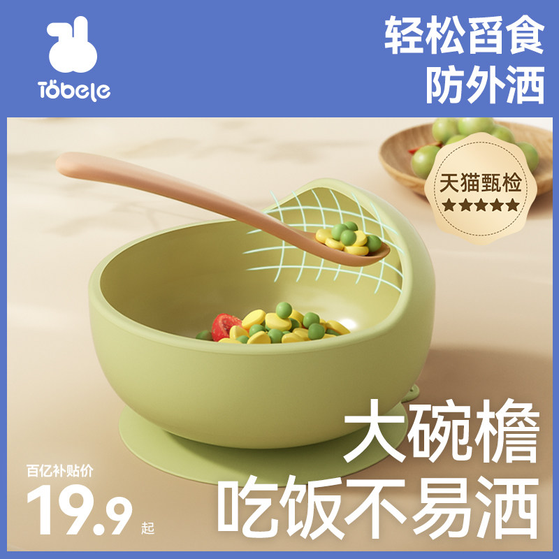 宝宝学吃饭训练辅食碗硅胶儿童餐具一体式婴儿专用吸盘碗防摔防烫