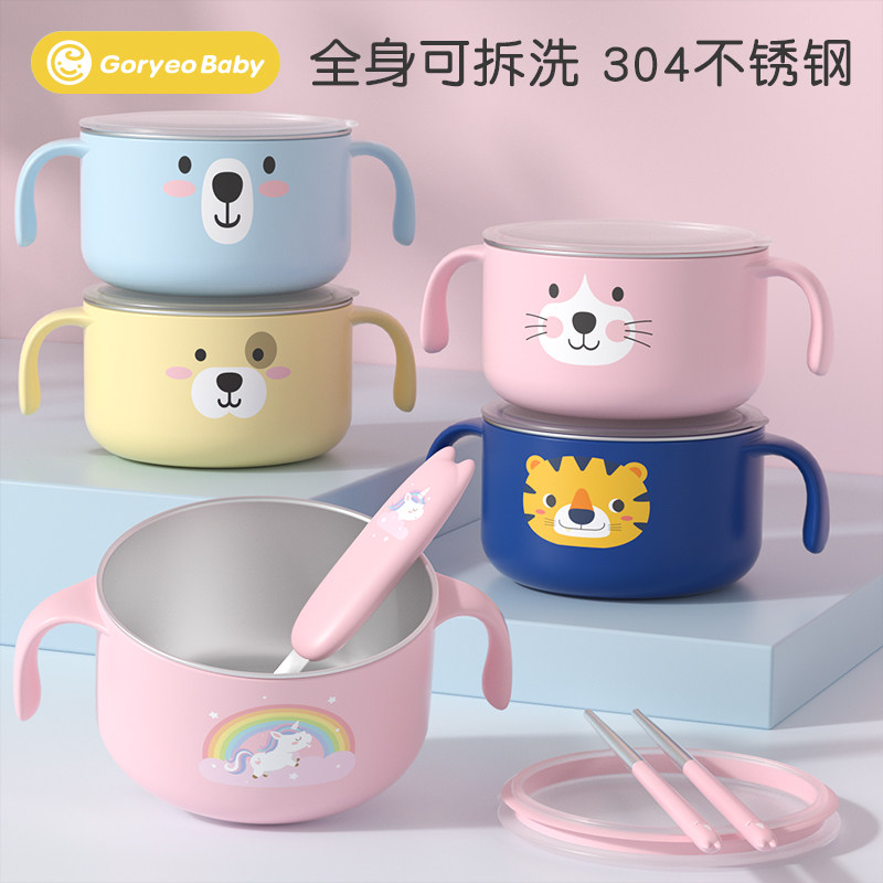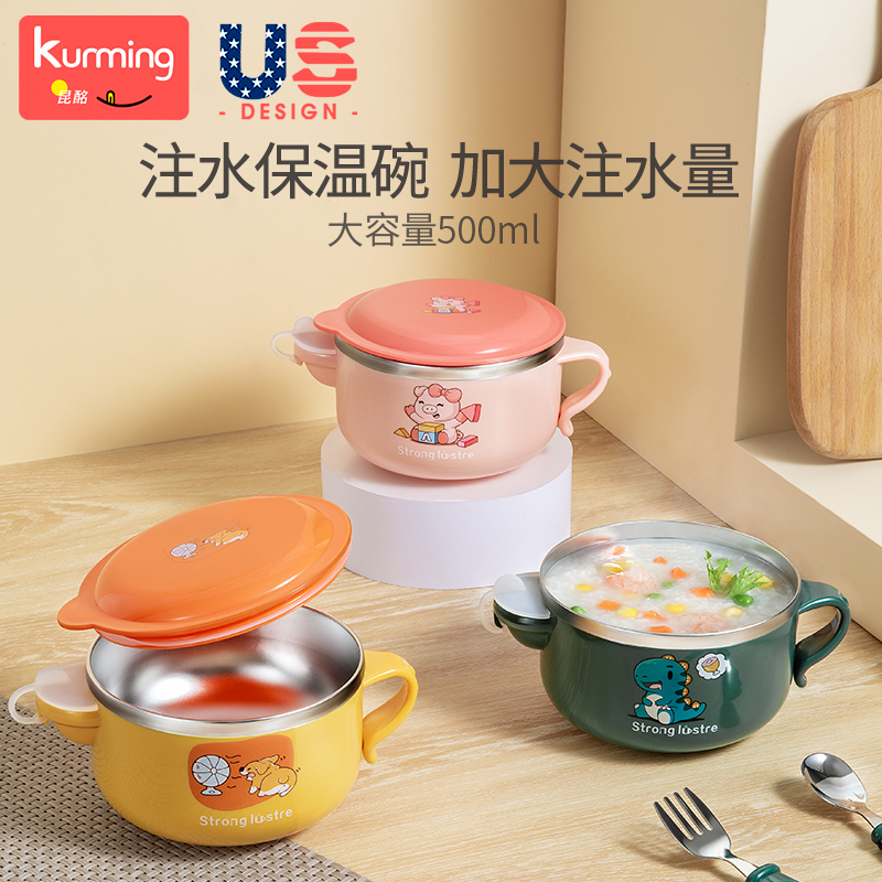 皇宠大眼萌宝宝辅食碗婴儿专用米粉注水保温碗恒温不锈钢儿童餐具