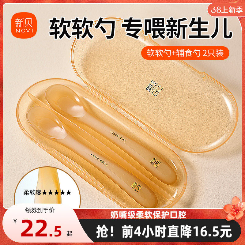新贝硅胶勺子新生婴儿宝宝辅食勺子喂水奶养米粉硅胶软勺儿童餐具