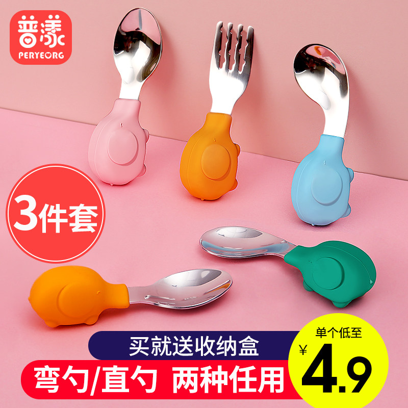 勺子叉子婴儿宝宝训练自主进食勺316不锈钢儿童吃饭餐具专用勺叉