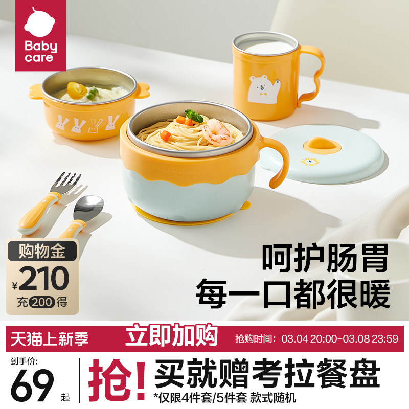 babycare辅食碗注水保温碗婴幼儿宝宝专用恒温吸盘碗儿童餐具套装