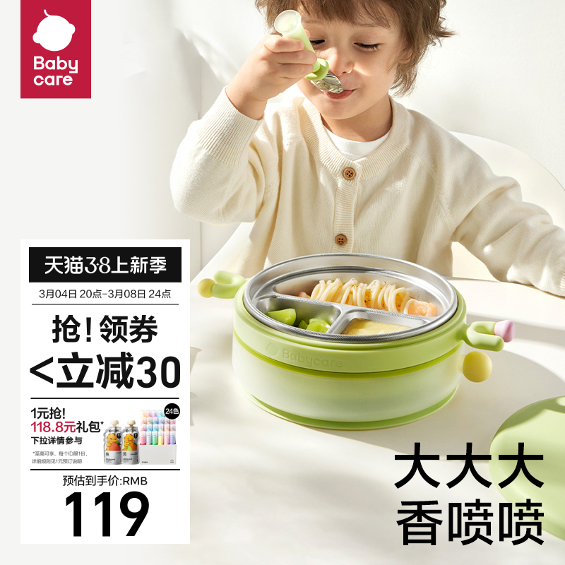 babycare宝宝辅食碗婴儿专用注水保温碗恒温不锈钢儿童餐具吸盘碗