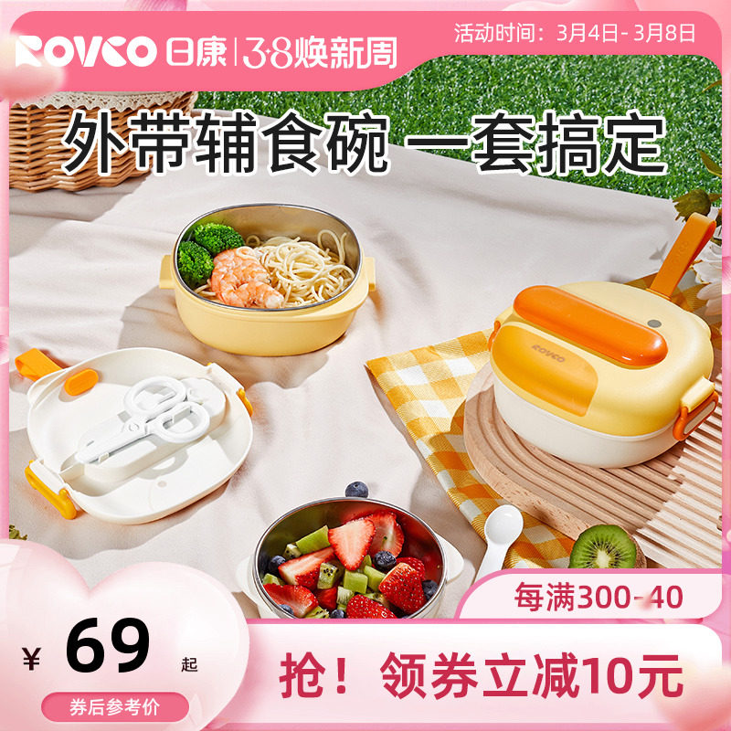 日康宝宝外出辅食碗婴儿出门专用便携316L不锈钢饭盒儿童餐具套装