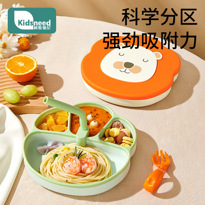 宝宝餐盘吸盘分格盘婴儿硅胶吸管辅食碗吃饭训练勺子儿童餐具套装